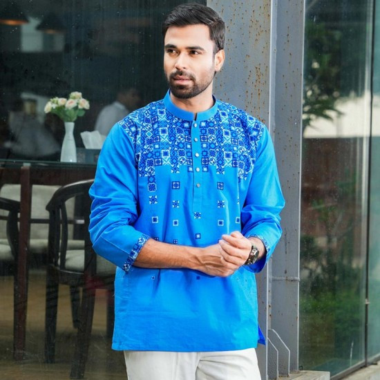 Upgrade your traditional wardrobe with this Blue color embroidered cotton half sleeve gents fatua. Crafted from premium soft cotton for all-day comfort, it features elegant embroidery detailing, making it perfect for casual wear, festivals, or cultural events. Lightweight, breathable, and timeless in design – a must-have for every gentleman.