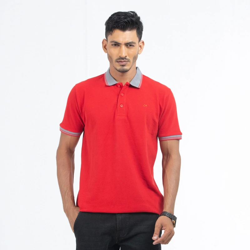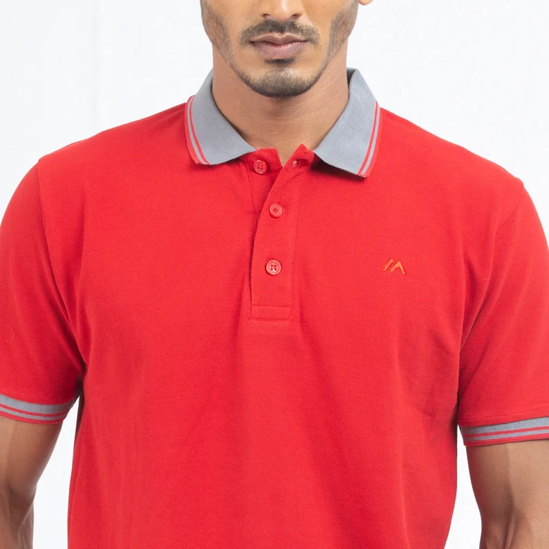 Cozy Pique Half Sleeve Polo Shirt - Devil Red For Men