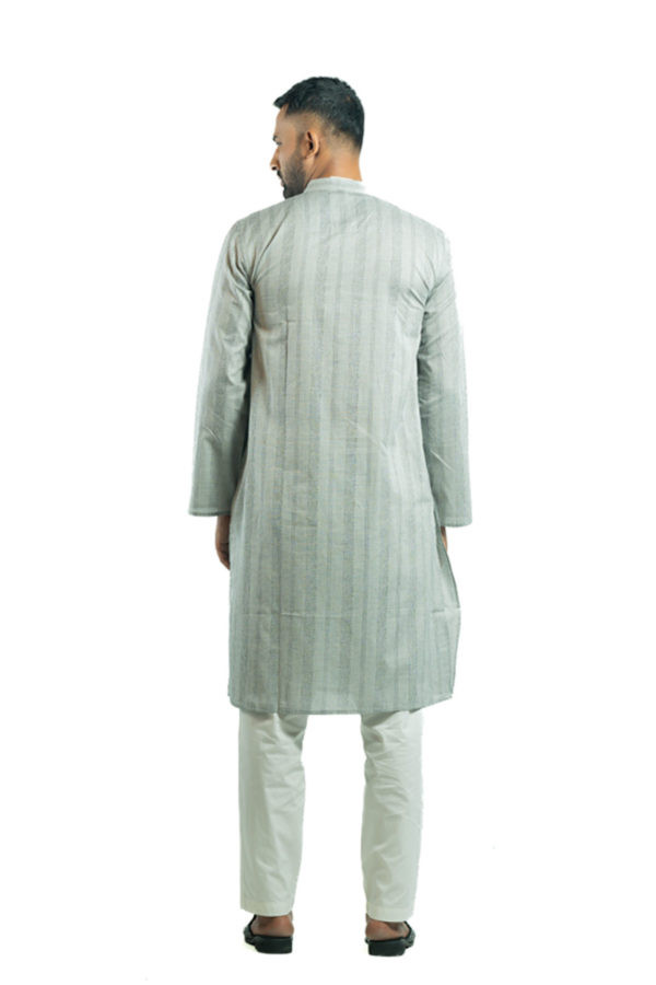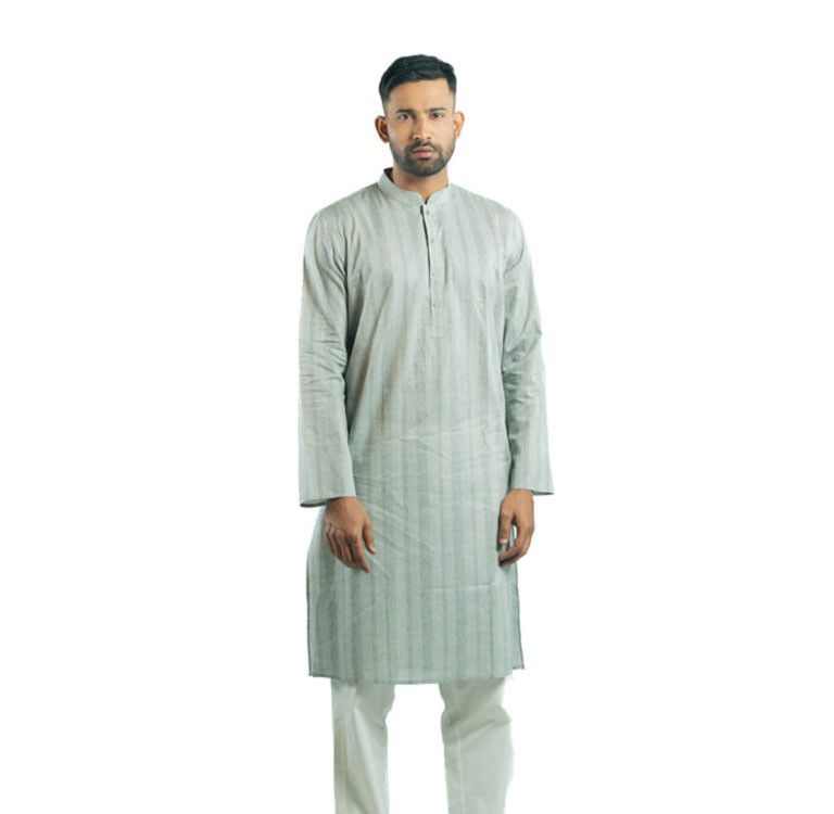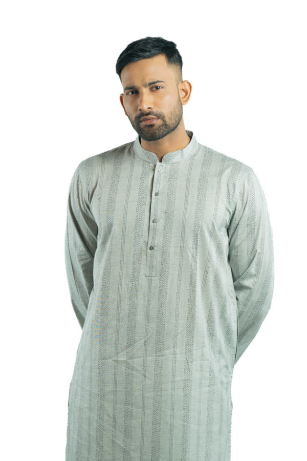 Long Panjabi - Ash Cotton Printed Panjabi