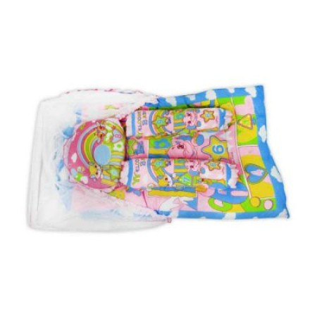 Transform your baby's sleep space into a haven of comfort with our Baby Bedding Set featuring a convenient mosquito net. This comprehensive set includes a pillow and bolsters, ensuring your little one is snug and cozy during naptime. Crafted from soft, high-quality materials, this bedding set provides the utmost comfort for your baby.