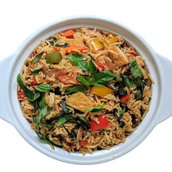 Basil Leaf Mixed Fried Rice from Thai Signature. Toppings : Fried rice with chicken, shrimp, hot basil leaf, black sauce & onion , Location:- Gulshan . SORRY...REAL FOOD IMAGE IS NOT AVAILABLE FOR THIS PRODUCT. The image displayed on left is just a sample image close to the product. NOT the actual food image which will be delivered. Same day order is accepted if ordered before 11Am BST.