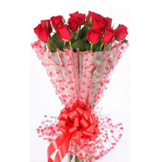 • 10 Pcs / 12 Pcs / 15 Pcs Beautiful  Indian red Roses with color Tissue in a bouquet.