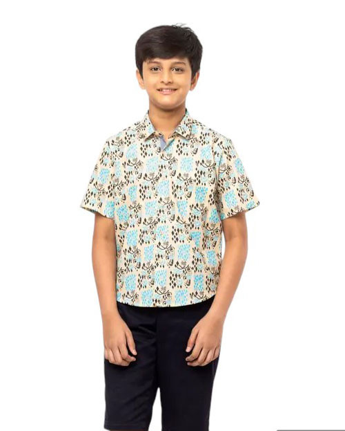 Boy Kids - Beige Printed Cotton Shirt