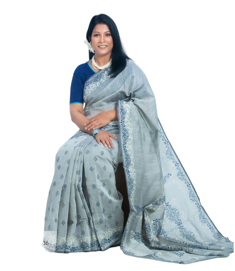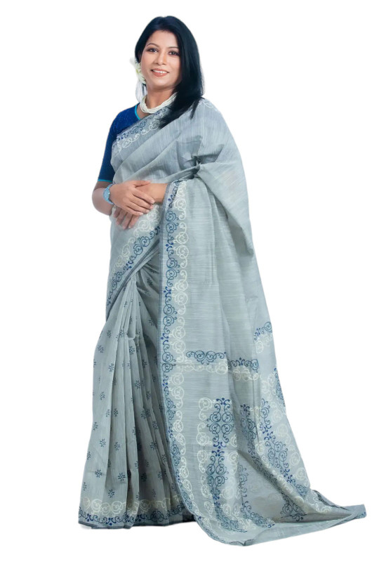 Introducing our exquisite slub-cotton Sharee, adorned with intricate screen-print and handwork detailing, designed to elevate your ethnic wardrobe with effortless elegance. Crafted from high-quality slub-cotton fabric, this Sari boasts a luxurious texture and comfortable feel, perfect for all-day wear. The delicate screen-print adds a touch of sophistication, while the handwork detailing adds a hint of artisanal charm. Whether it's a festive celebration or a formal event, this Sari is sure to make you stand out with its unique blend of traditional craftsmanship and contemporary style. Embrace timeless beauty with our slub-cotton Sari and make a statement with every step.