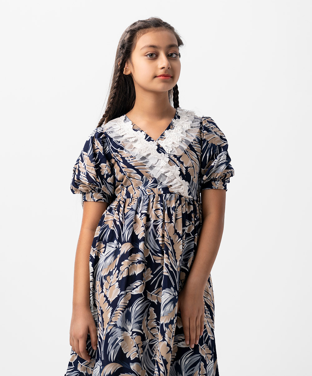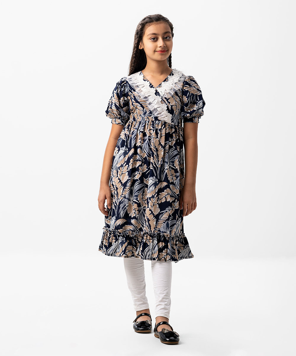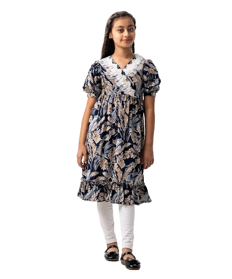 Elevate your little one's style with our Blue All-Over Printed Frock. Designed with a charming all-over print, this frock adds a playful touch to any outfit. Crafted from soft and comfortable fabric, it ensures all-day comfort, while the vibrant blue color enhances its appeal. Perfect for casual outings or special occasions, this frock is sure to become a favorite in her wardrobe.