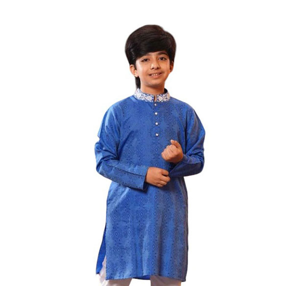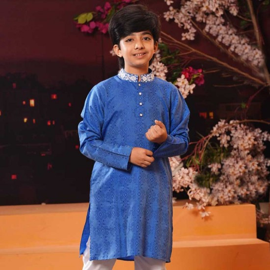 Kids Panjabi - Blue colour jacquard design cotton embroidered Boys panjabi