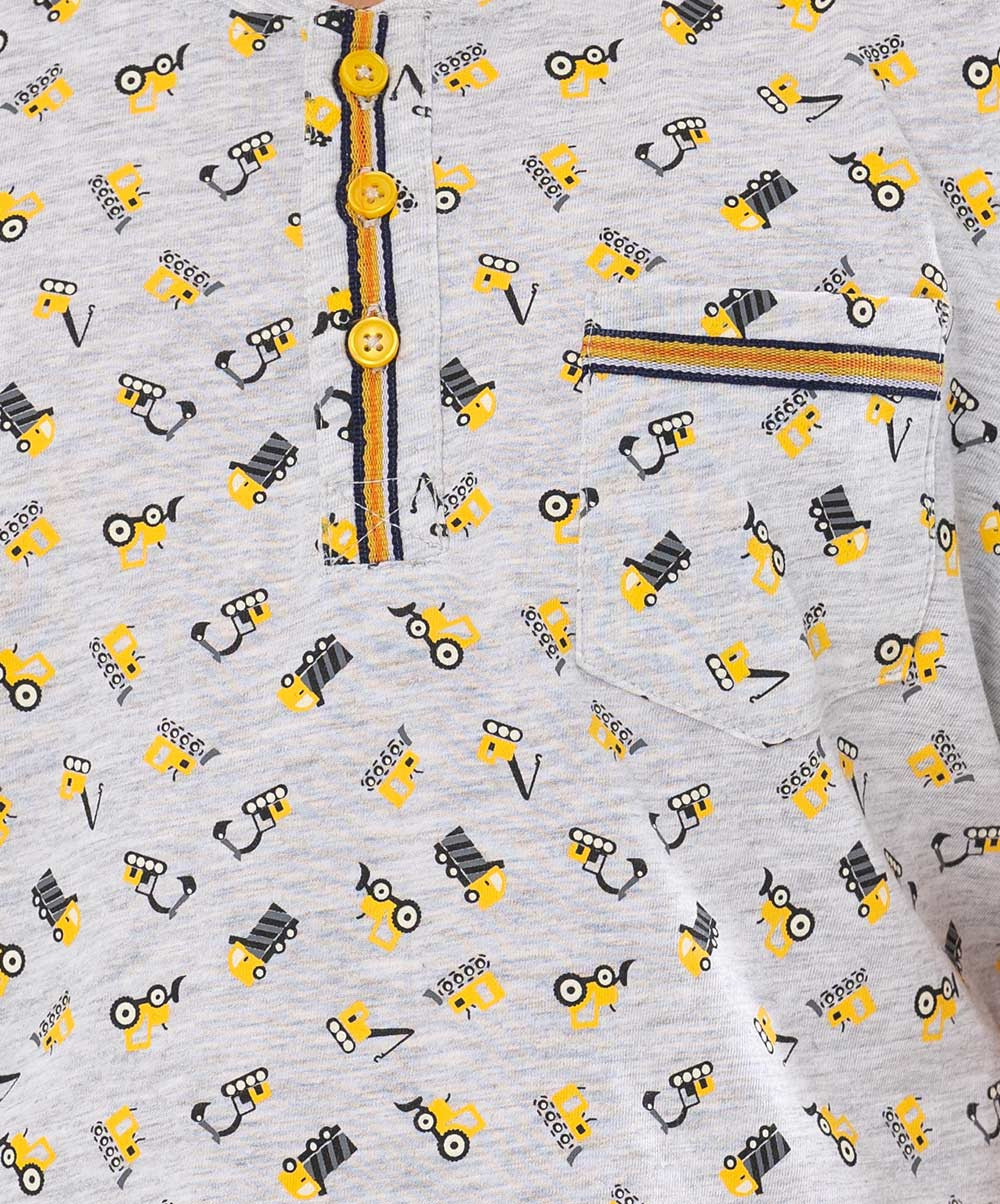 What sets this T-shirt apart is the vibrant all-over print, adding a playful and youthful element to your child's outfit. The cool gray hue serves as a versatile canvas for the lively prints, making this T-shirt an ideal choice for various occasions.