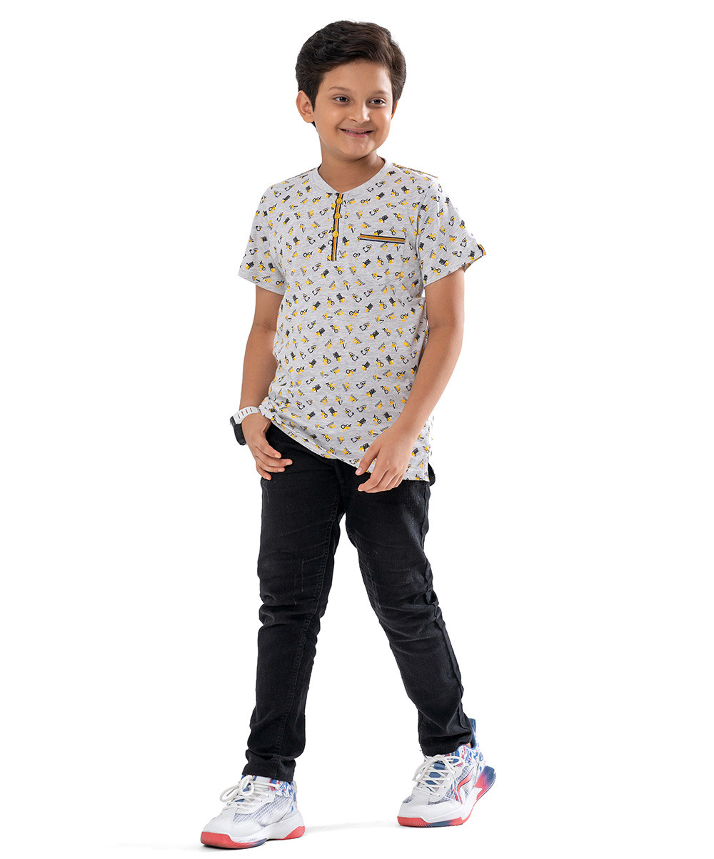 Elevate your child's wardrobe with the All Over Print Kids Boys 180 GSM Single Jersey Henley T-Shirt – where comfort meets fashion in a delightful blend of style and playfulness.