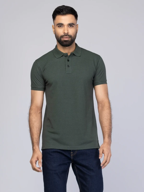 Polo Shirt : Bottle Green Mixed Cotton Polo Shirt