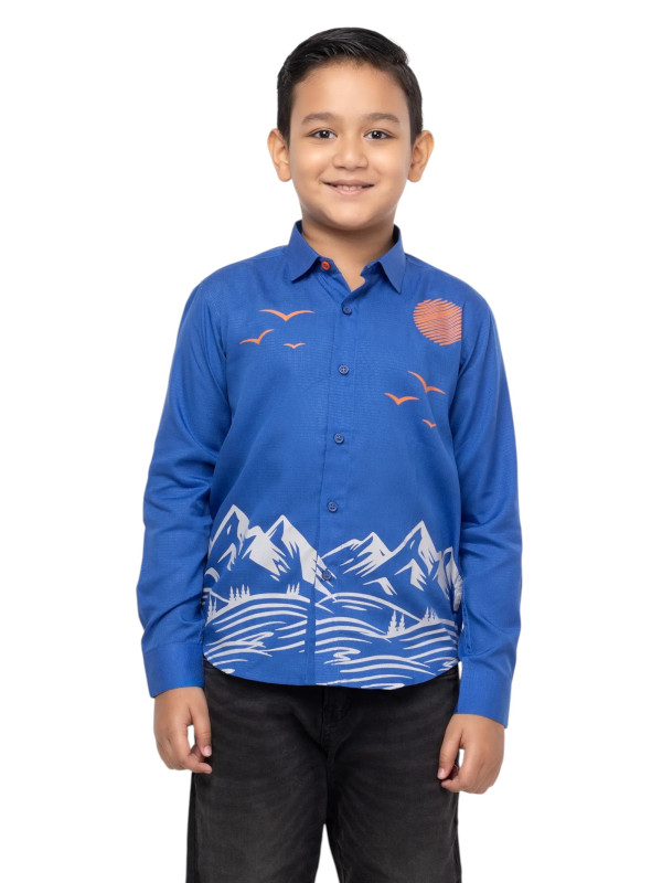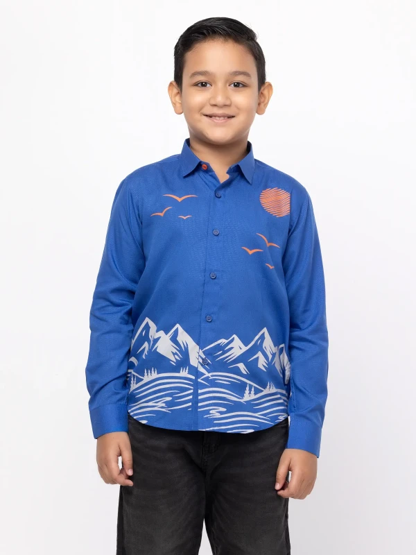 Boy Kids - Blue Printed Tencel Cotton Shirt