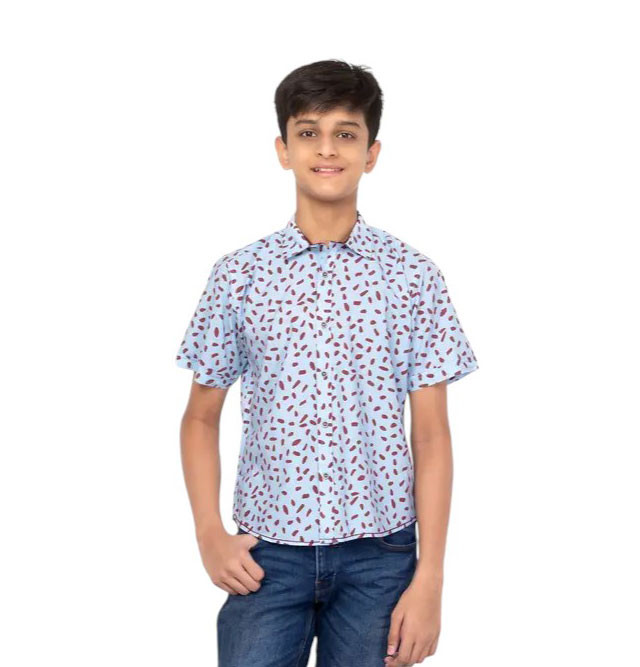 Boy Kids - Slate Blue Printed Cotton Shirt