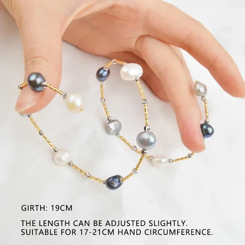 Bracelet -  Real Natural Freshwater Baroque Pearl Bracelets & Bangles For Women Jewelry Gift