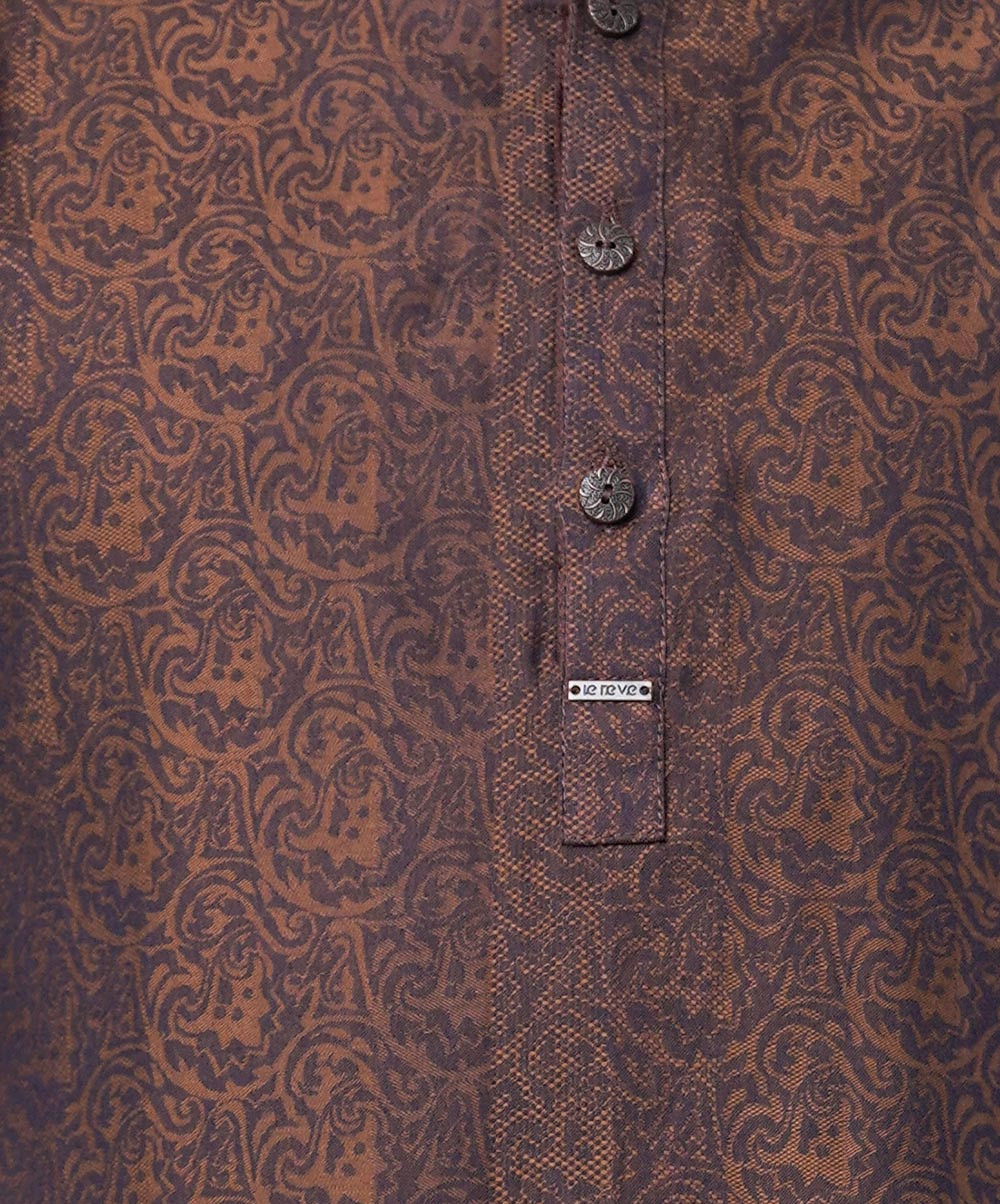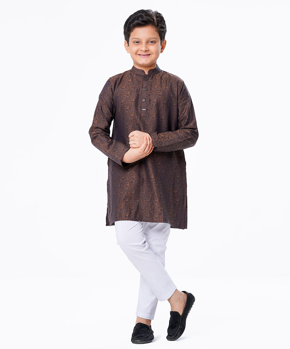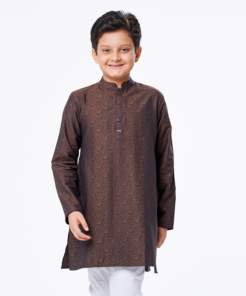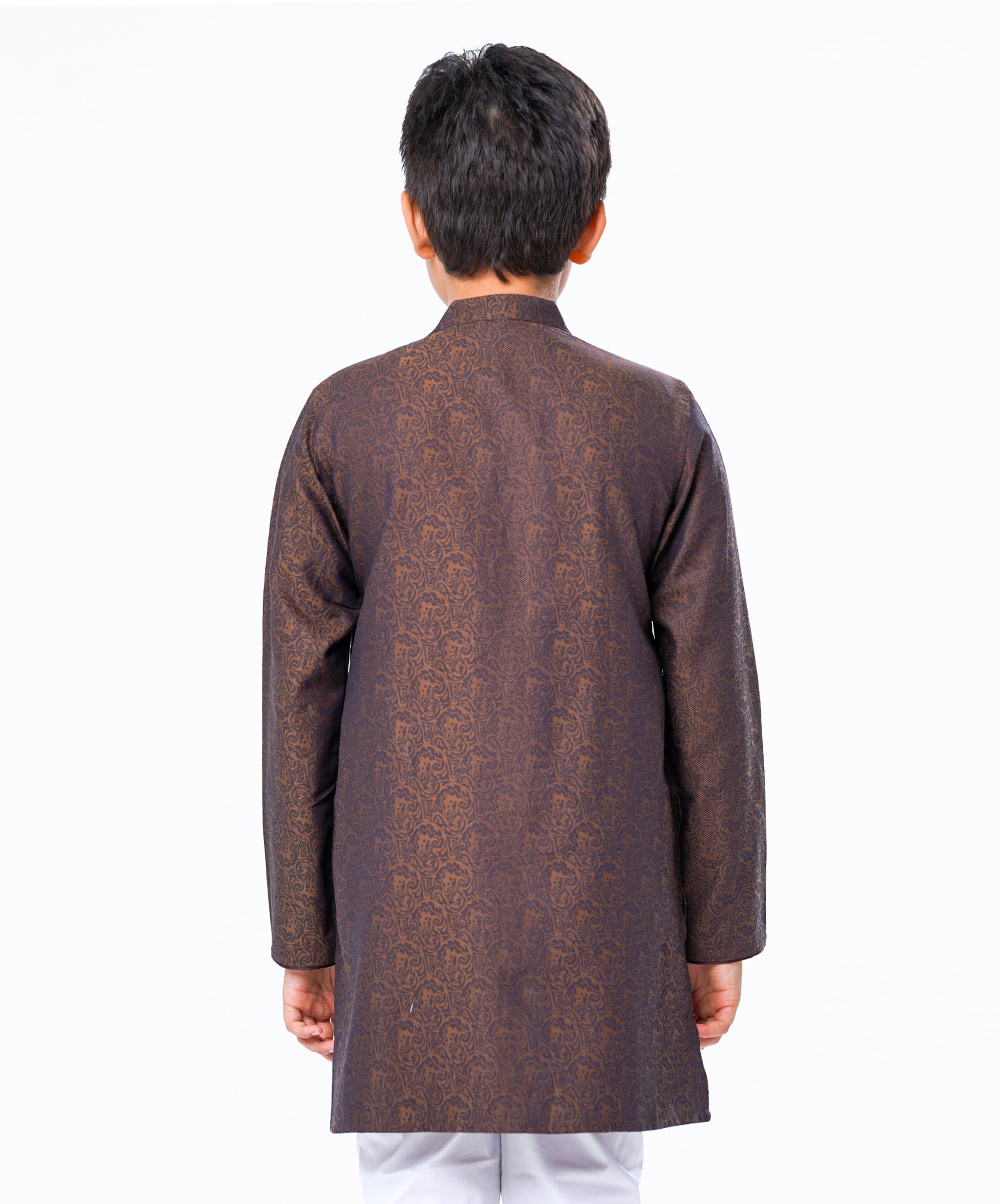 Kids Boy Brown Jacquard Cotton Panjabi