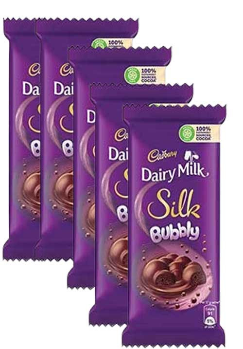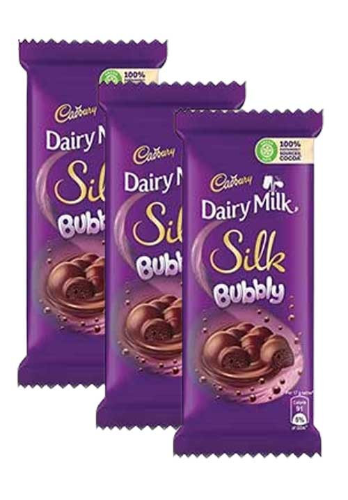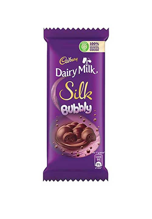 Savor the luxurious taste of Cadbury Dairy Milk Silk Bubbly Chocolate in a delightful 120gm pack.