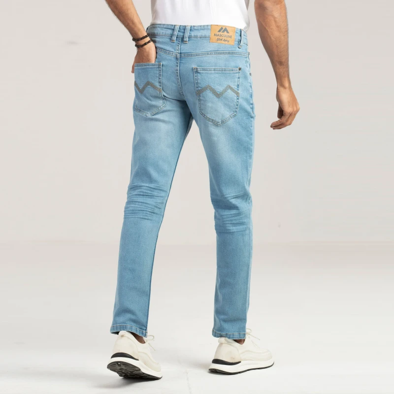 Comfort Stretch Semi Fit Light Blue Jeans For Men