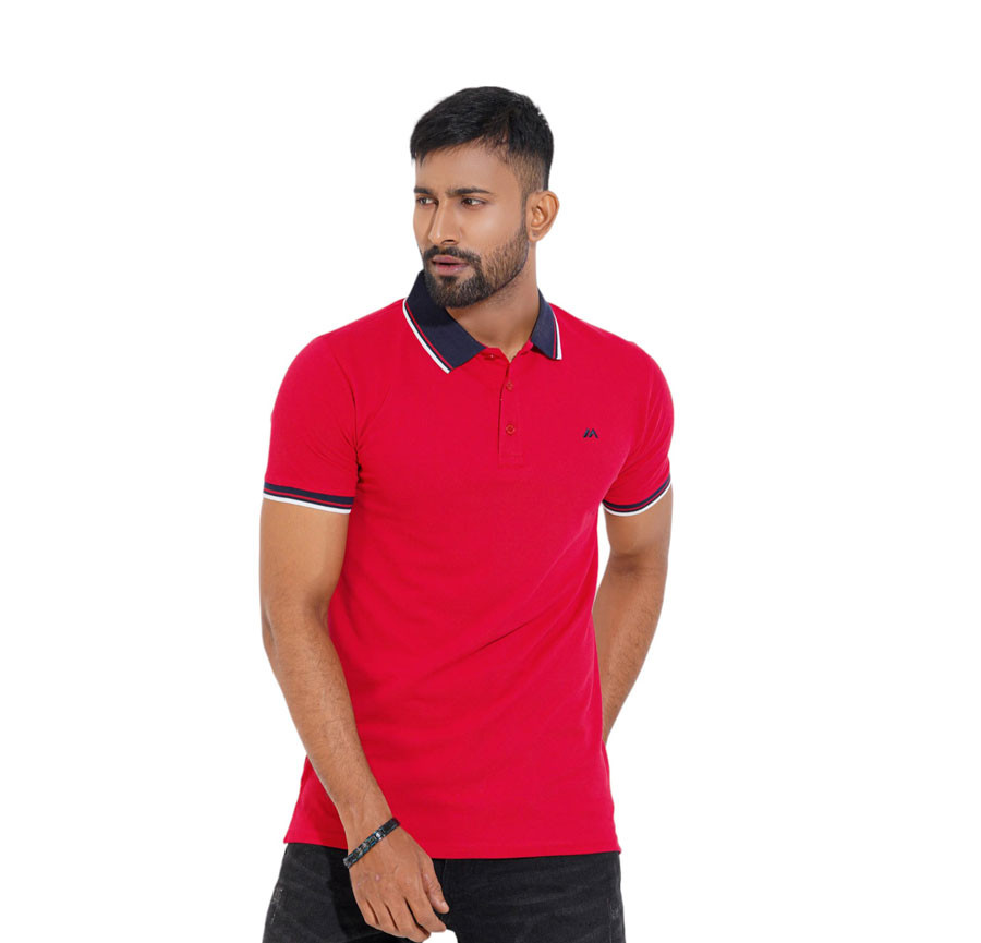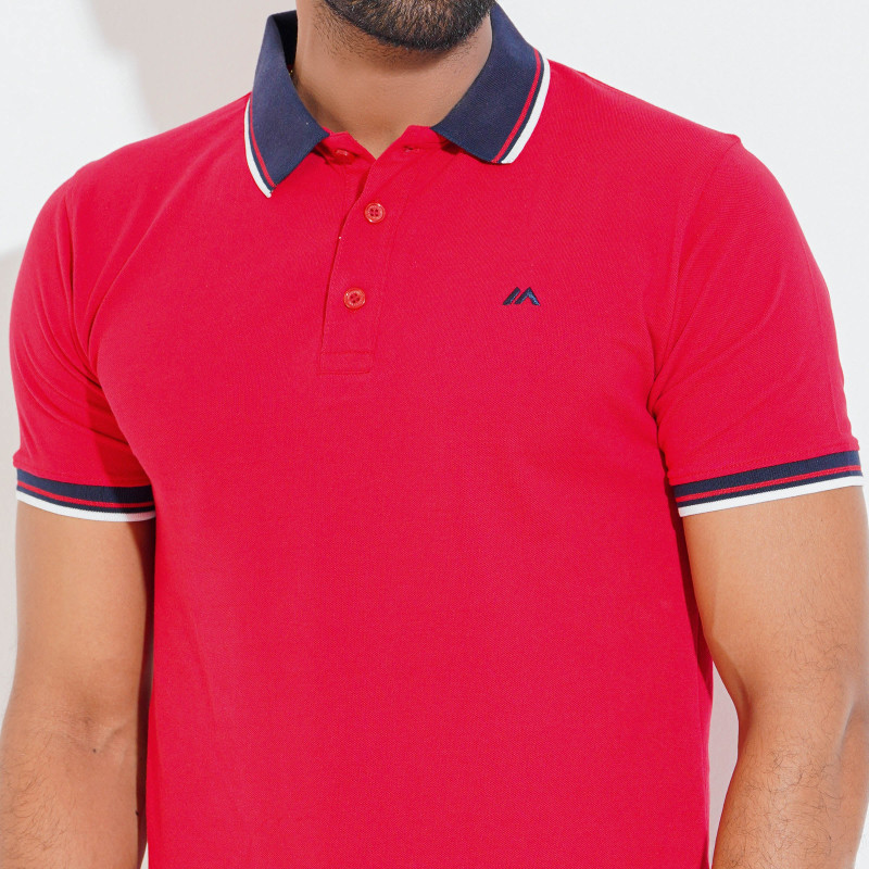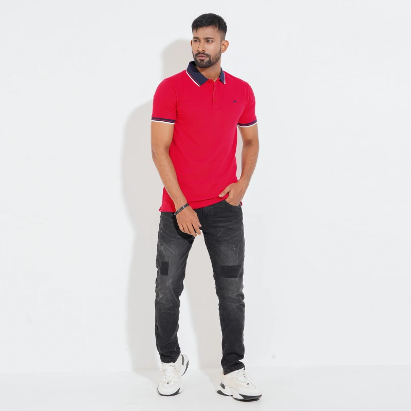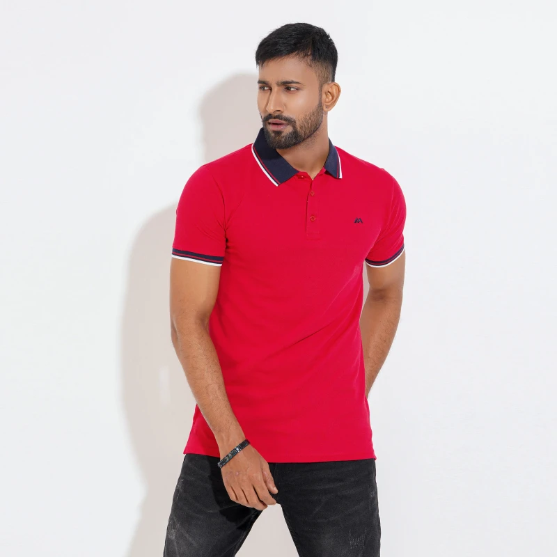 Cozy Pique Half Sleeve Polo Shirt - China Red For Men