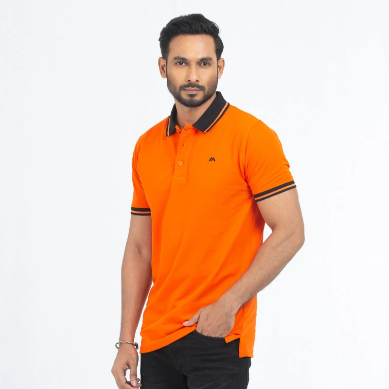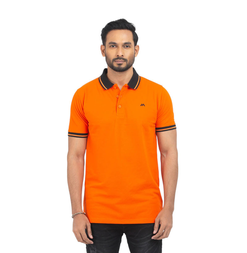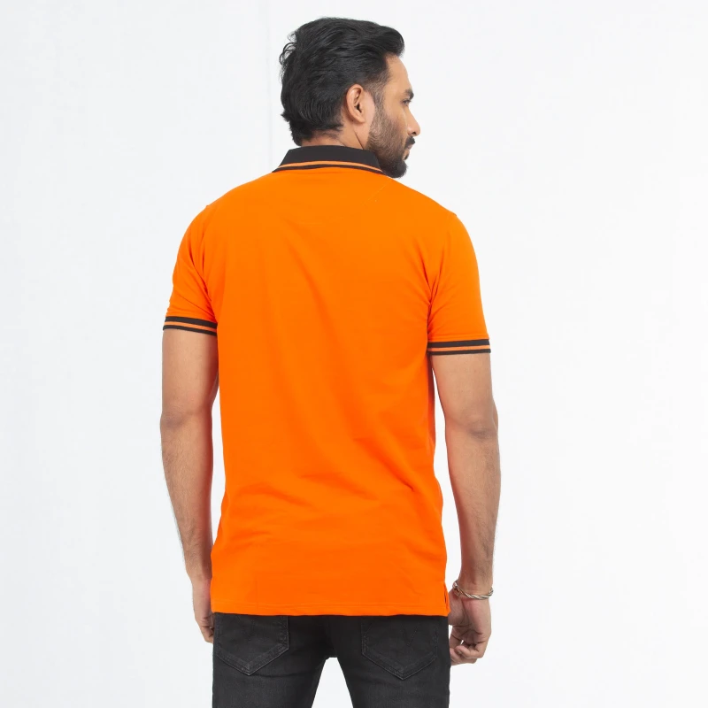 Cozy Pique Half Sleeve Polo Shirt - Orange For Men