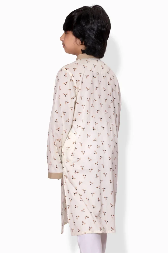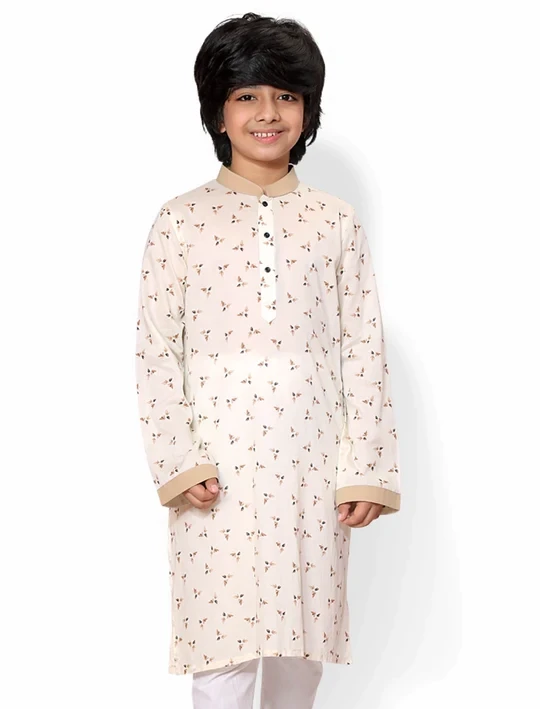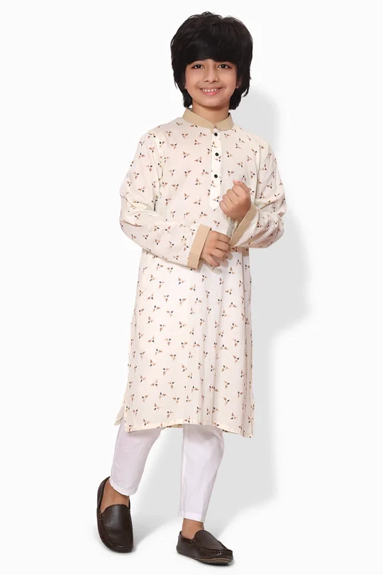 Introducing our charming Kids' Panjabi, a fusion of tradition and contemporary style for your little one. Crafted with meticulous care, it features a striking solid contrast on the collar top, adding a touch of flair to this classic garment. What sets it apart is the cut and sew variation, ensuring comfort and durability for active young ones. Additionally, the wide contrast sleeve on the top side adds a playful twist to the design. Elevate your child's wardrobe with this exceptional piece, a perfect blend of cultural heritage and modern fashion for the next generation.