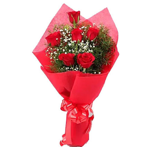 • 6 Pcs / 10 Pcs / 15 Pcs Beautiful Deshi red Roses with color Tissue in a bouquet.