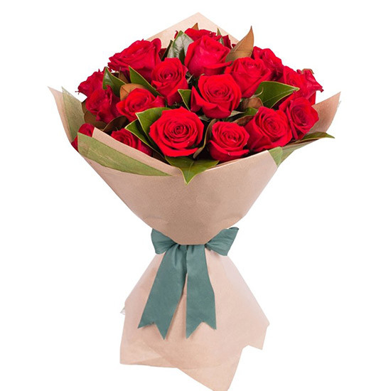 • 15Pcs / 18Pcs / 20 Pcs Beautiful Deshi red Roses with color Tissue in a bouquet.