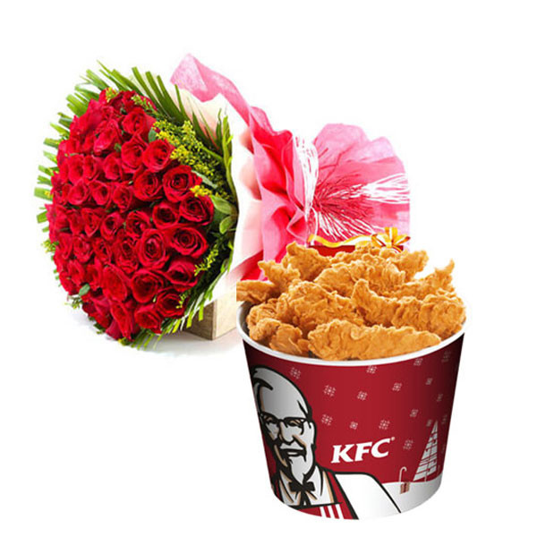 Deshi Rose Delight: A Combo of 40 Roses and 8 Crispy Chicken Pieces