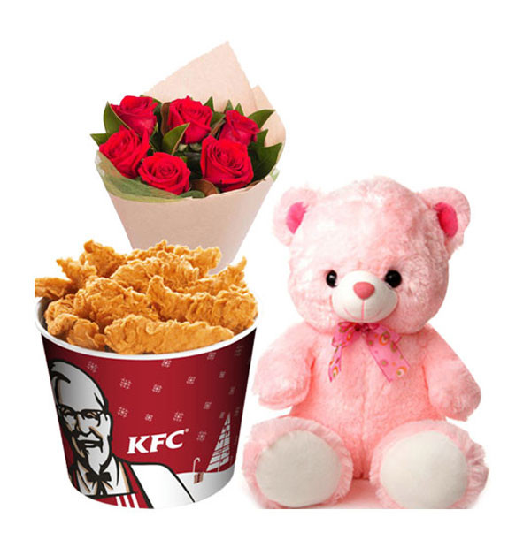 Deshi Red Rose, Crispy Chicken & Teddy Bear