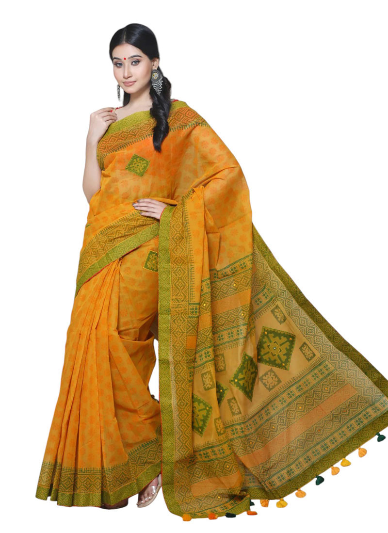 Exquisite Elegance: Embrace timeless sophistication with our Embroidered Screen Printed Half Silk Sharee. Crafted with utmost finesse, this saree seamlessly blends tradition with contemporary charm. The intricate embroidery and vibrant screen prints add a touch of opulence to its Half Silk Sharee fabric, making it a statement piece for any occasion.