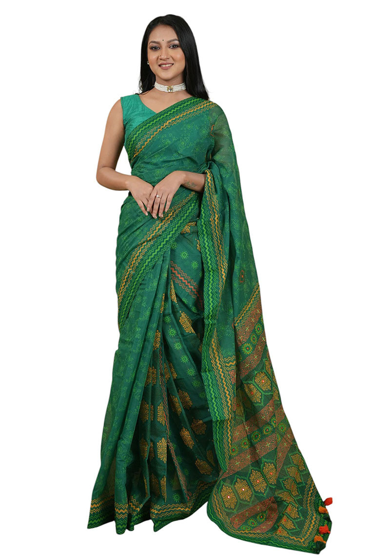 Exquisite Elegance: Embrace timeless sophistication with our Embroidered Screen Printed Half Silk Sharee. Crafted with utmost finesse, this saree seamlessly blends tradition with contemporary charm. The intricate embroidery and vibrant screen prints add a touch of opulence to its Silk Sharee fabric, making it a statement piece for any occasion.