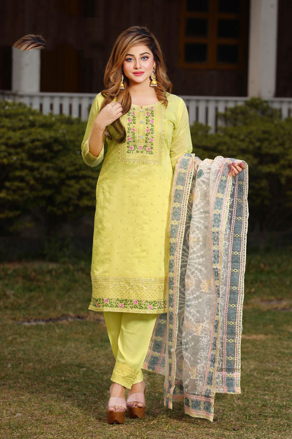 This embroidered stitched cotton Shalwar Kameez is a blend of traditional elegance and contemporary style. Made from premium quality cotton, it promises both comfort and durability. The kameez features intricate embroidery that adds a touch of sophistication, making it perfect for casual outings or festive occasions. The set includes a beautifully coordinated shalwar, complementing the overall look. Ideal for those who appreciate a mix of classic design with modern flair, this outfit is a must-have in your ethnic wardrobe.