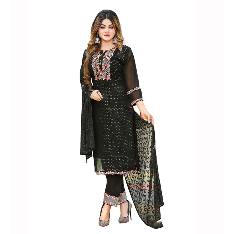 Introducing our Embroidered Stitched Georgette Salwar Kameez Set for Women, a blend of elegance and comfort. Crafted from premium georgette fabric, this set features intricate embroidery that adds a touch of sophistication to your ensemble. Designed for both style and ease, the stitched salwar kameez offers a perfect fit and graceful drape. Whether it's a formal gathering or a casual outing, this versatile set is sure to elevate your ethnic wardrobe with its timeless appeal and impeccable craftsmanship.