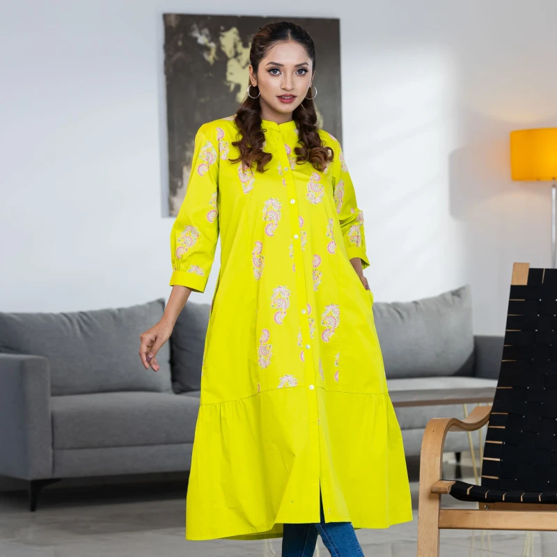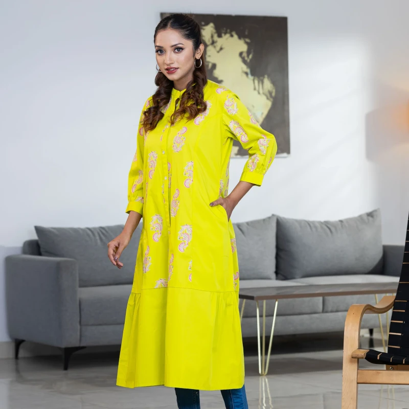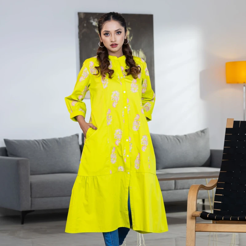 This multi-color ethnic average kurti is perfect for adding a pop of color and vibrancy to your wardrobe. Made with high-quality fabric, it provides comfort and style for any occasion. Stand out from the crowd and embrace your unique style with this kurti.