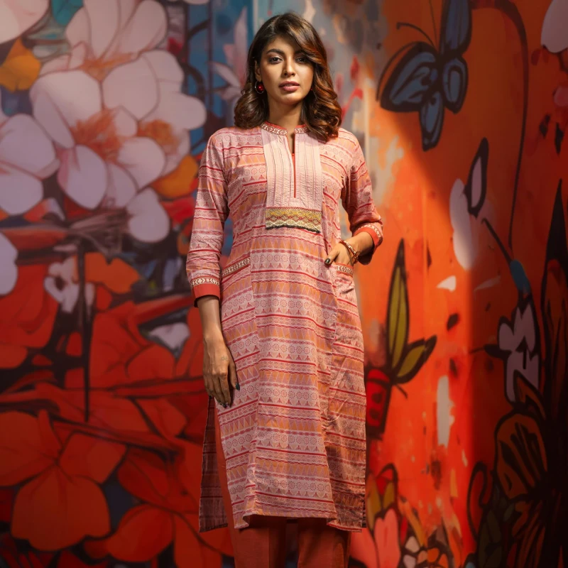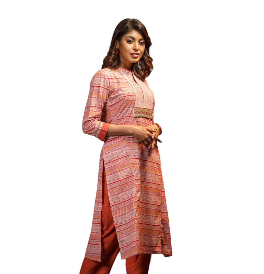 Introducing our beautiful Ethnic Kurti in a stunning Onion Pink color. Perfect for any occasion, this kurti will bring out the best in you. Add a touch of elegance to your wardrobe with this vibrant and stylish piece. Elevate your style game with our Ethnic Kurti in Onion Pink.