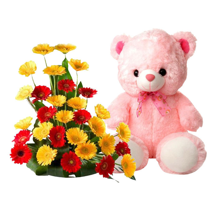• Beautiful Imported 30 Mixed Gerbera In a Basket.