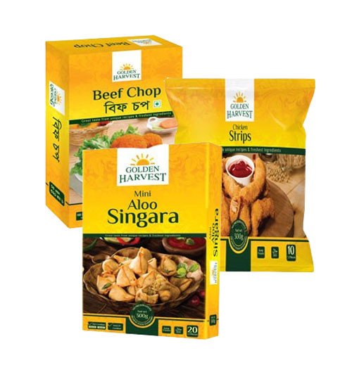 • Frozen Chicken Snacks Combo 01 - Mini Singara 300 gm, Chicken Strips 300 gm, Beef Chop 320 gm.