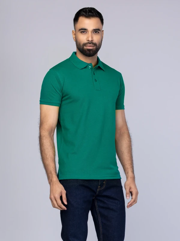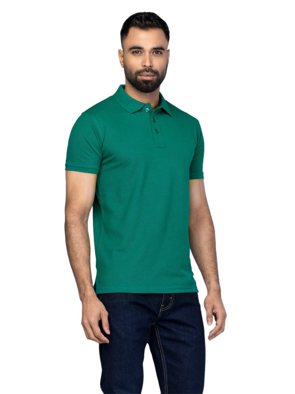 Green Mixed Cotton Polo Shirt For Men