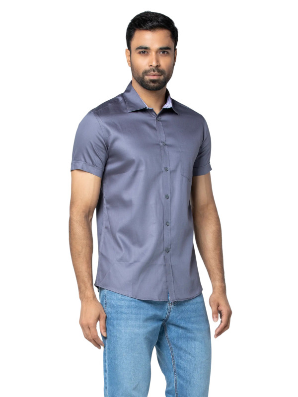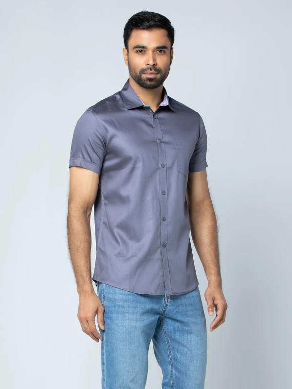 Casual Half Sleeve - Grey Cotton Fitted Shirt