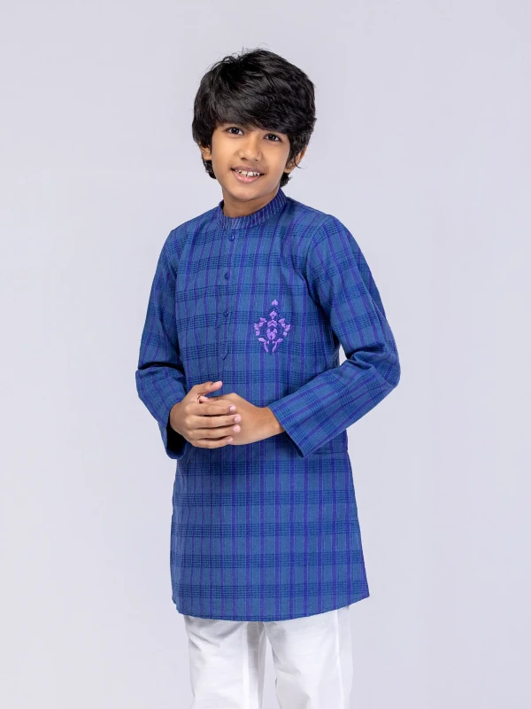 Kids Panjabi - Grey/Purple Handloom Embroidered Cotton Panjabi
