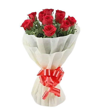 • 10 Pcs / 15 Pcs /  20 Pcs / Beautiful Imported Red Roses With Color Tissue in a Bouquet.