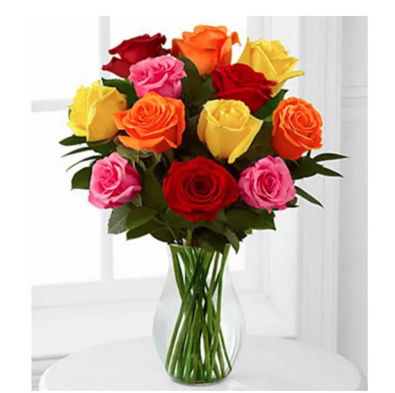 • 12 Pcs / 15 Pcs /  18 Pcs / Beautiful Imported Mixed Roses in a Vase.