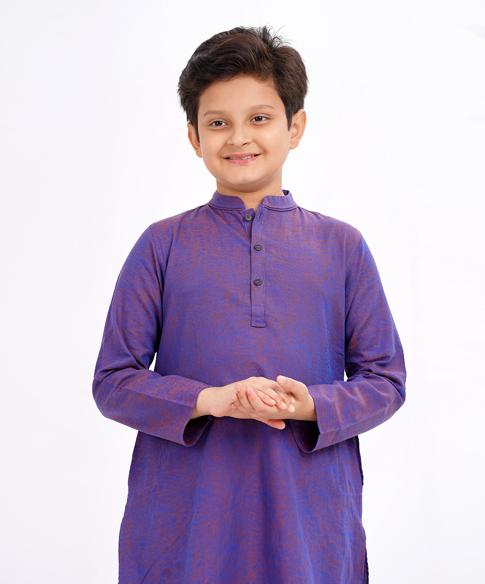 Kids Boy Blue Jacquard Panjabi