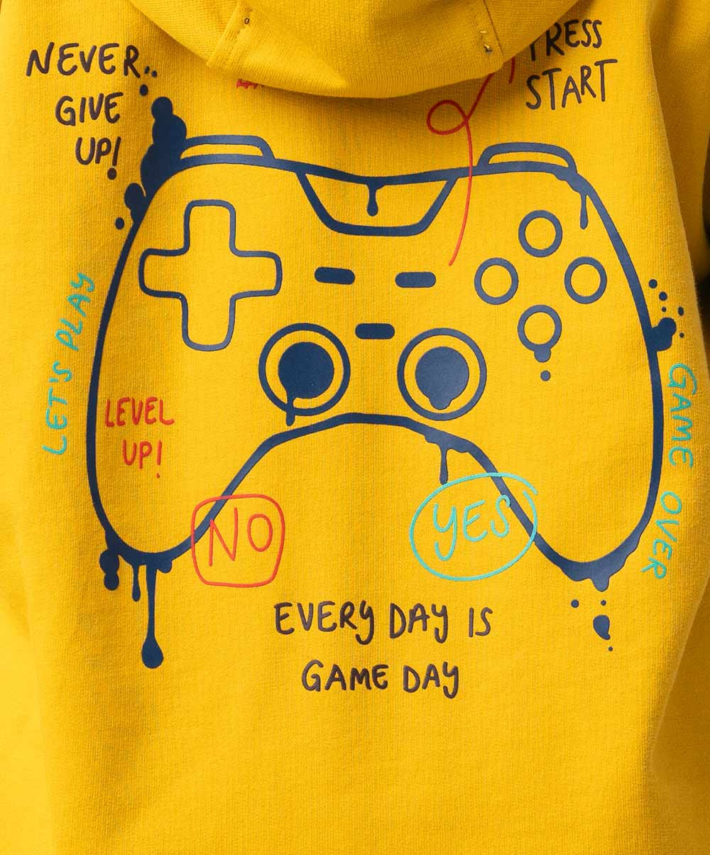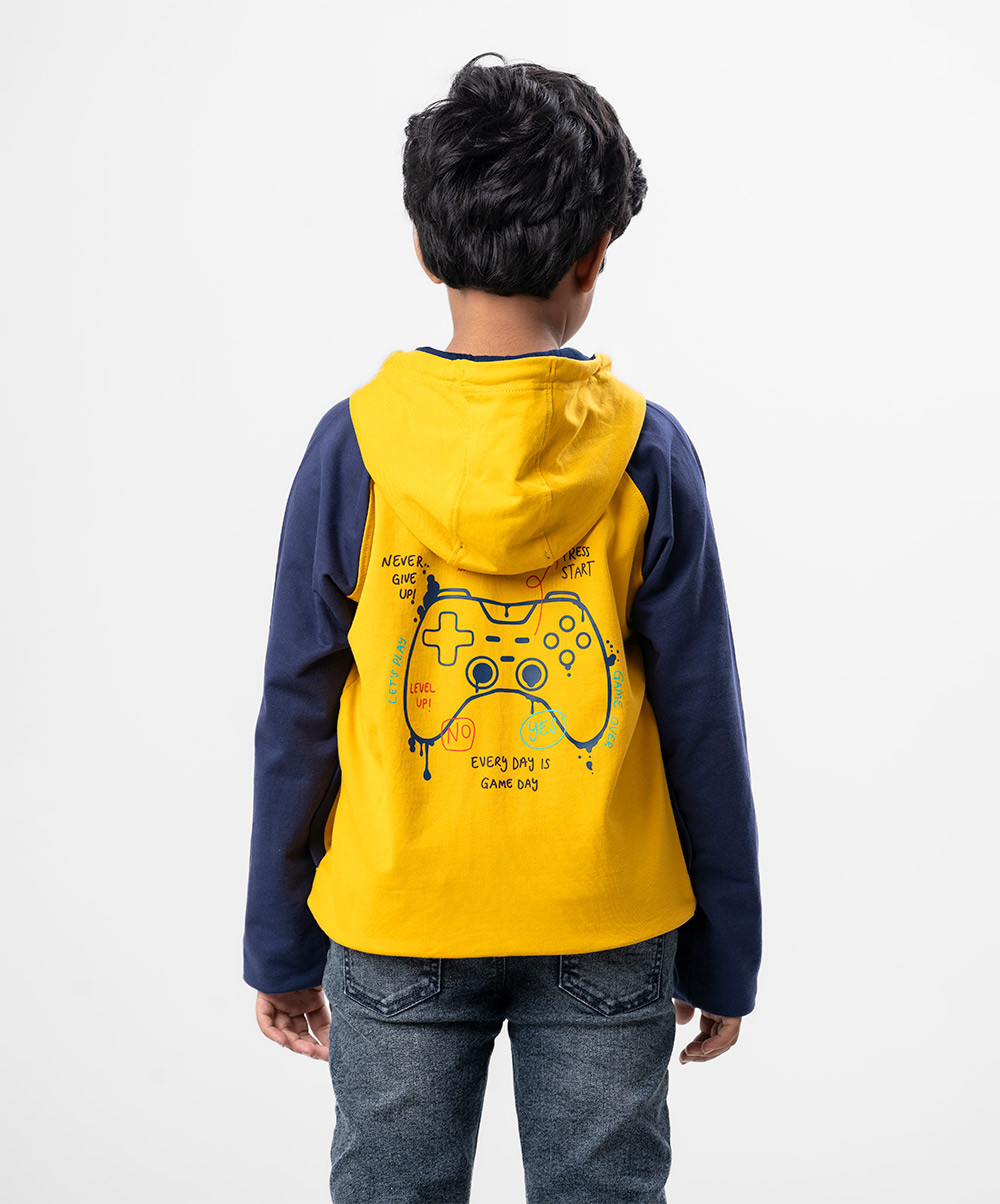Kids Boy Round Neck Yellow Hoodie.  Available Size :2-3, 4-5, 6-7, 8-9, 10-11,  - Please indicate your desired product size / age in special instruction area of delivery information page. (4 - 5) Days Advance order is requird. A Product of La reve.