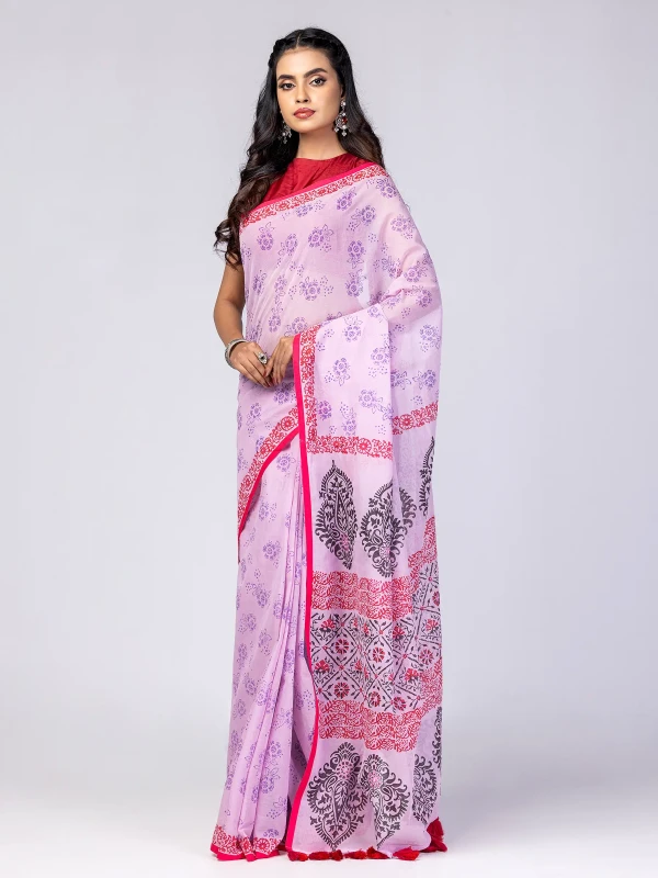 Sharee -Lavender Printed and Embroidered Cotton Sharee