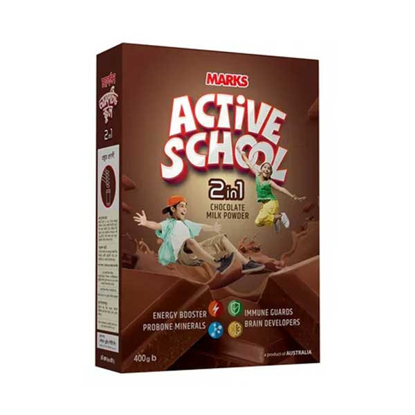 • Marks Active School 2 in 1 Chocolate Milk Powder 400 gm.
