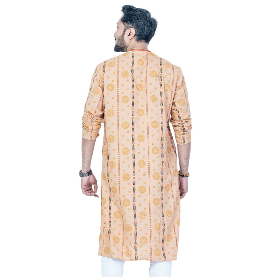 Introducing our Cotton Panjabi, a harmonious blend of comfort and style. This Panjabi features intricate screen-print designs complemented by exquisite embroidery work, creating a look that's both traditional and contemporary. Made from high-quality cotton, it ensures breathability and comfort, perfect for any occasion. Whether for festive events or casual outings, this Panjabi adds a touch of elegance to your wardrobe. Embrace the perfect combination of cultural heritage and modern flair with this beautifully designed piece.