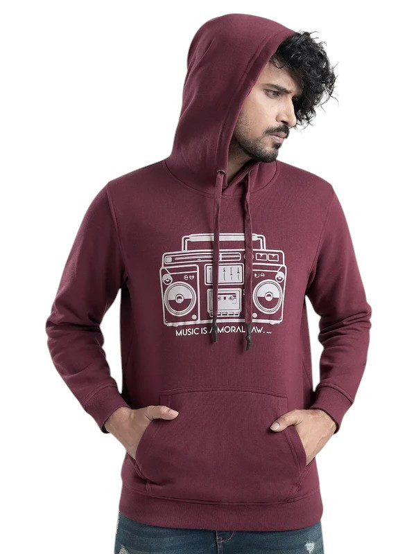 Men Hoodie - Men's Radio Print Burgundy Hoodie - 05