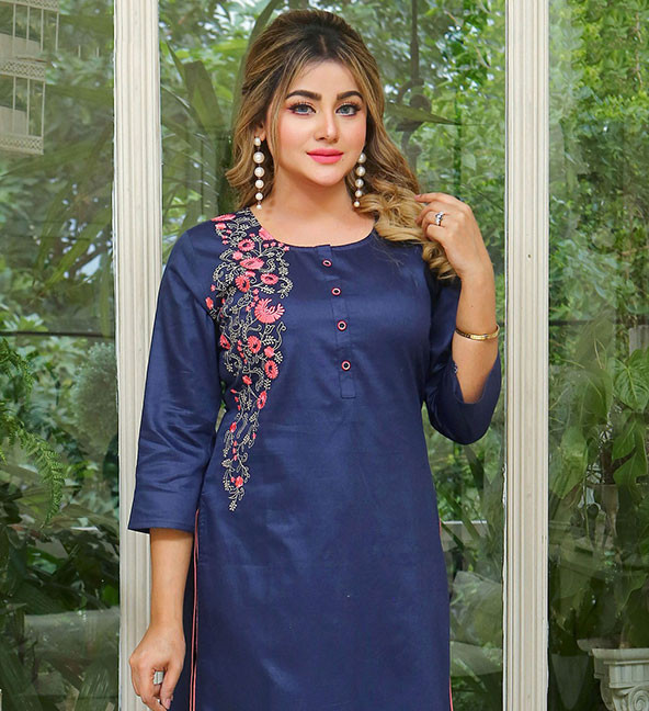 DeshiGreetings.com is delighted to introduce the Navy Blue Kameez, a singular masterpiece of refined elegance. This 100% original and exact garment promises an authentic experience, showcasing a seamless fusion of traditional aesthetics and contemporary allure.