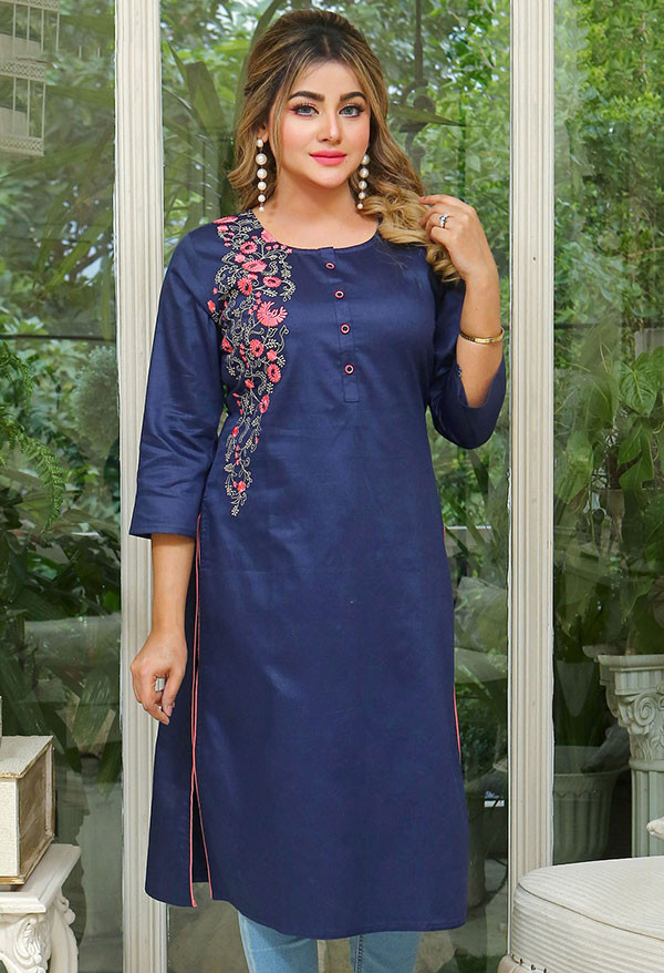 Immerse yourself in the cultural richness of this garment with confidence, as DeshiGreetings.com guarantees the delivery of an unparalleled creation. It's essential to note that, in order to preserve the exclusivity of this unique piece, DeshiGreetings.com does not entertain refunds or exchanges for the Navy Blue Kameez. Elevate your wardrobe with this distinctive and irreplaceable creation, capturing the essence of classic elegance, exclusively presented by DeshiGreetings.com.
