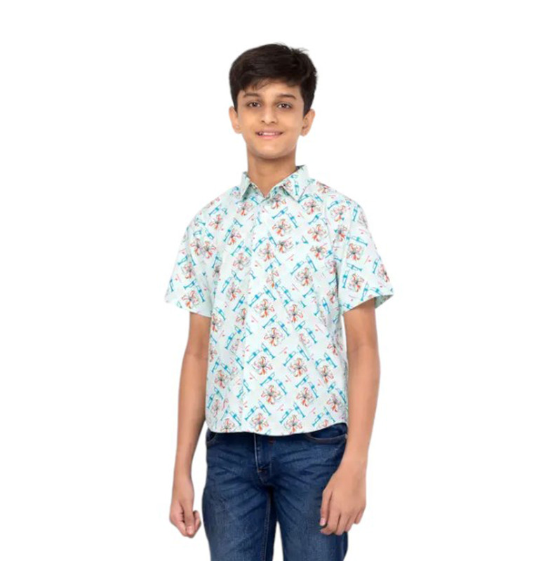 Boy Kids - Mint Blue Printed Cotton Shirt