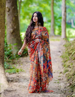 Make a bold fashion statement with our high-quality art silk saree featuring vibrant and eye-catching digital prints. Each saree boasts unique and artistic designs that set it apart from traditional sarees, making it perfect for any occasion where you want to stand out. Crafted with care, this saree combines elegance and contemporary style seamlessly.