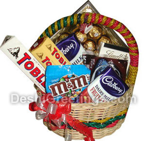 1 Ferrero Rocher 24pcs box, Creamy Milk Chocolate - 2 bar, Cadbury Dairy Milk 2 bar, Toblerone Fruit & Nut Gold - 2 bar, Toblerone White - 2 bar and chocolate candy - 2 pack , Alpine Milk Chocolate - 2 pack .Please note that we will provide all brand name chocolate bars that are available in the market. As we will try to retain al the above items but upon availability some brand name may or may not be included.
